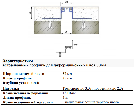 | Тип профілю | Ширина шва (a) | Переміщення | Видима ширина (b) | Монтажна висота (h) | Навантаження | Монтажна ширина (s) |