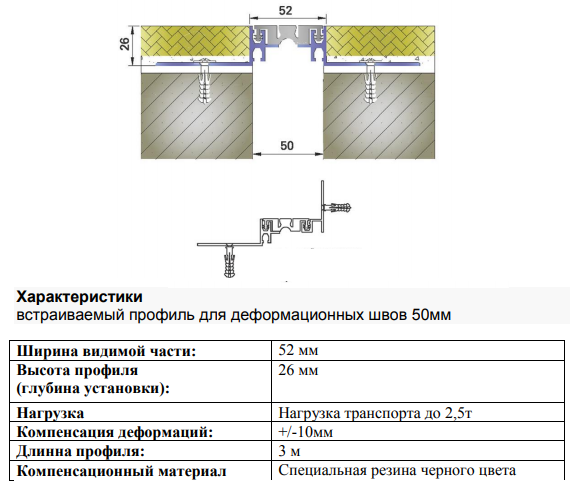 | Тип профілю | Ширина шва (a) | Переміщення | Видима ширина (b) | Монтажна висота (h) | Навантаження | Монтажна ширина (s) |