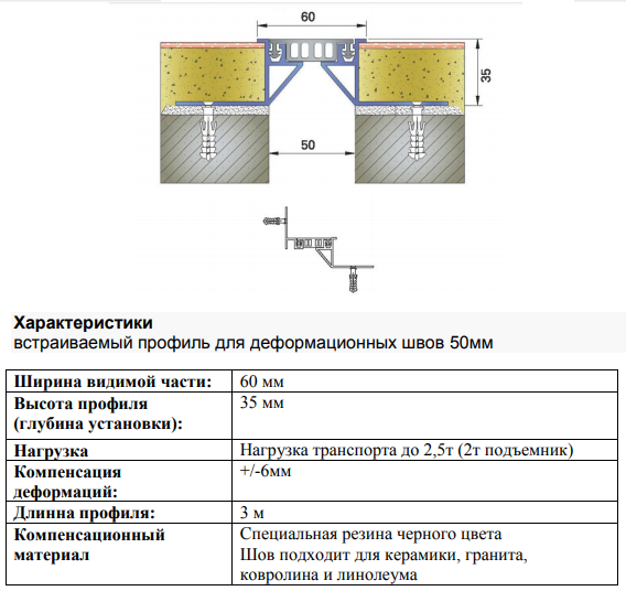 | Тип профілю | Ширина шва (a) | Переміщення | Видима ширина (b) | Монтажна висота (h) | Навантаження | Монтажна ширина (s) |